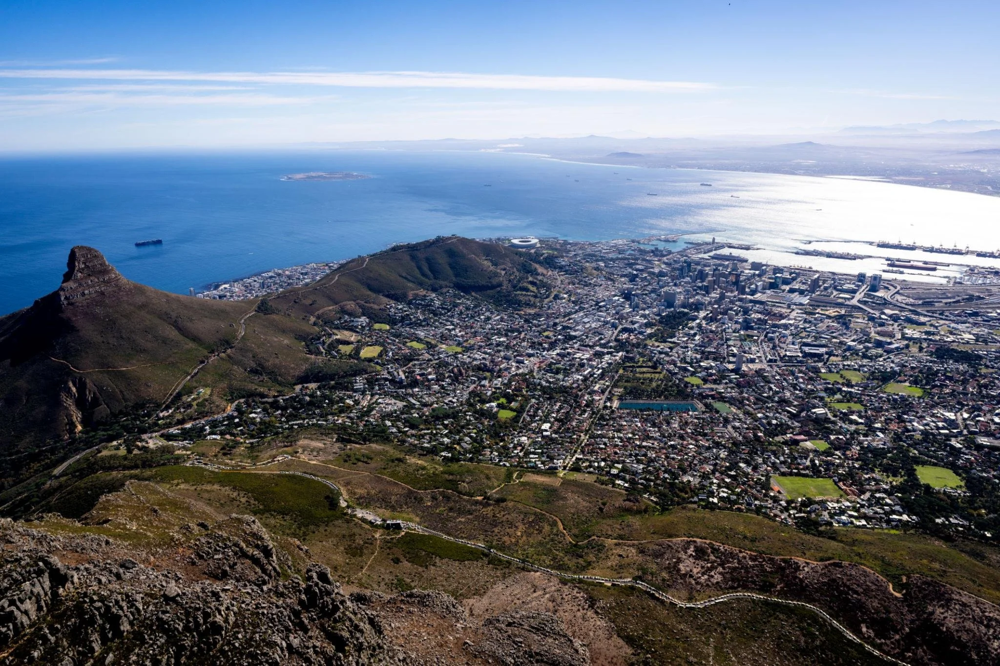 Cape Town is one of the world’s most breathtaking coastal cities, where dramatic mountains rise straight from the ocean and every corner reveals a new perspective of natural beauty, culture, and adventure. Anchored beneath the iconic Table Mountain, the vibrant City Bowl flows toward the sparkling harbor of the V&A Waterfront, one of South Africa’s most visited destinations filled with world-class restaurants, luxury shopping, sailing excursions, and panoramic views of the Atlantic Ocean. Along the Atlantic Seaboard, the golden beaches of Camps Bay, Clifton, and Llandudno stretch beneath the rugged peaks of the Twelve Apostles, offering some of the most spectacular coastal scenery in Africa. Just beyond the city, the legendary Chapman’s Peak Drive winds dramatically along towering cliffs between Hout Bay and Noordhoek, forming one of the most scenic coastal routes in the world. Continuing along the wild landscapes of the Cape Peninsula, travelers arrive at the towering cliffs of Cape Point, where powerful ocean currents collide and the vast meeting of the Atlantic and Indian Oceans creates one of the most dramatic viewpoints on the continent. Nearby, the historic naval village of Simon’s Town is home to the beloved colony of African penguins at Boulders Beach, where visitors can observe these charming birds living among massive granite boulders and turquoise waters. Wildlife encounters continue throughout the peninsula, where troops of chacma baboons roam the protected landscapes of Table Mountain National Park. Cape Town is also deeply woven into South Africa’s sporting culture, where passionate crowds gather at DHL Stadium overlooking Green Point for major rugby events and where the legendary Newlands Cricket Ground, framed by the dramatic slopes of Table Mountain and Devil’s Peak, is widely considered one of the most beautiful cricket stadiums in the world. From sunrise hikes up Lion’s Head to coastal drives along the peninsula, vibrant markets, historic neighborhoods like Bo-Kaap, oceanfront dining, sailing excursions, and unforgettable wildlife encounters along the Cape’s rugged coastline, Cape Town captures the soul of South Africa in one extraordinary destination.