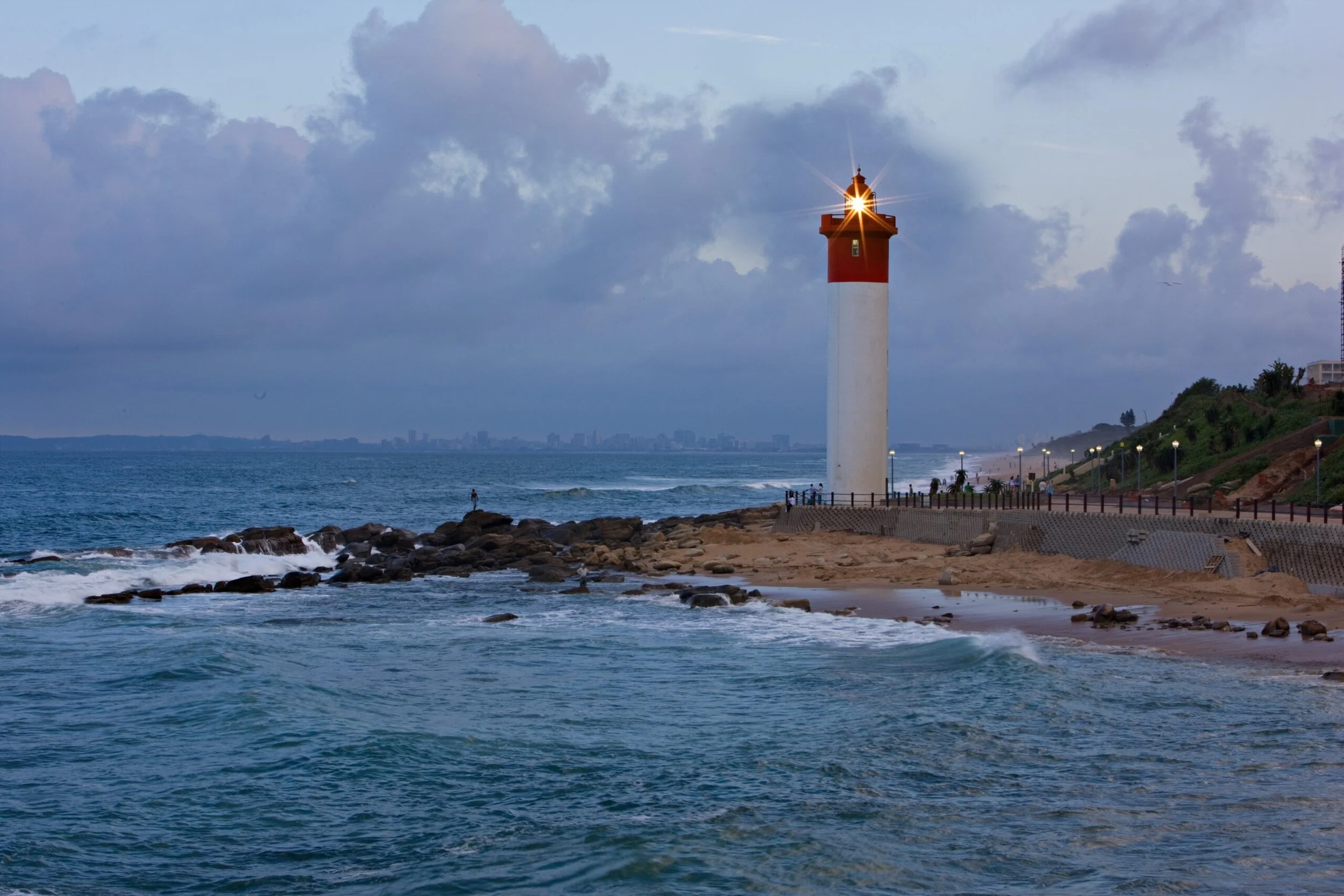 Just north of the city, Umhlanga Rocks offers one of the coast’s most stylish seaside settings with luxury hotels, oceanfront dining, and the iconic red-and-white lighthouse overlooking the Indian Ocean. Continue along the coastline to Ballito, where scenic boardwalks wind along golden beaches and pods of playful dolphins often appear offshore, giving the region its beloved nickname—the Dolphin Coast.
